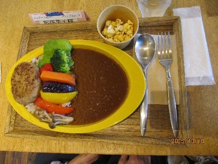 「いろは蔵」ではショッピングを楽しみ、nanairoカフェでは遊佐カレーを中心としたメニューでスパイシーだけどコクのあるカレーを頂きました。かわいいロボットも上手に接待してくれました。